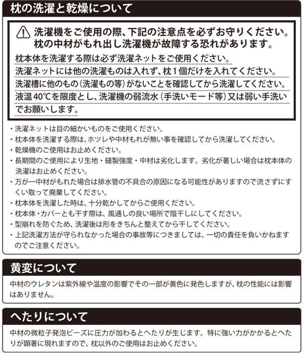 | 仕様 | 洗濯機使用可(ネット使用) 乾燥機使用不可 枕カバー:ファスナータイプ |