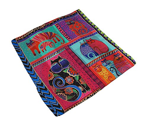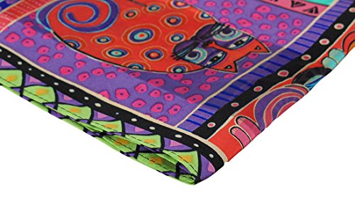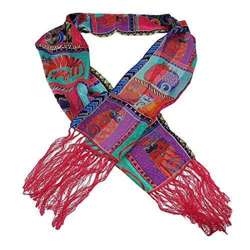 Studio : Laurel Burch Publisher : Laurel Burch Binding : Apparel Product Description This 100% silk scarf features the colorful artwork of Laurel Burch titled 'Feline Cottage'! This 53 inch long, 11.5 inch wide (135 X 29 cm) scarf has 6 inches of silky fringe on the ends and a hand rolled hem around the edges to prevent fraying, and is recommended to dry clean only. The bright and colorful hues are accented by a whimsical patterned border, and it's the perfect accessory to dress up a plain blouse or outfit, tie on a handbag, or wear as a headband. It`s certain to brighten your day, and it makes a great gift for Laurel Burch fans! 0
