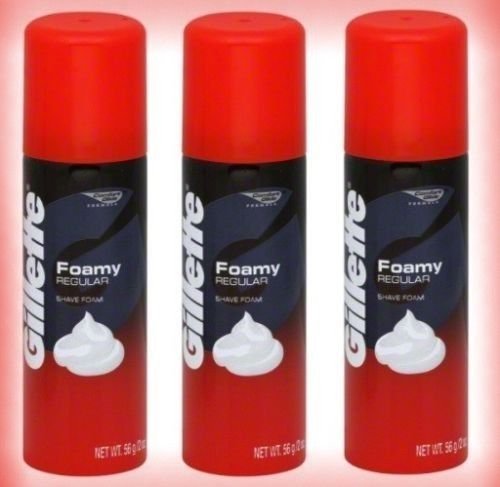 Gillette 3 Foamy Regular Shave Foam Men 2oz Travel Size (3 PACK)