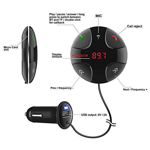 USB CHARGING PORT This Bluetooth car MP3 transmitter designed with 1 port car USB charger, max 5V/2A output, it can charge your phone, tablet and any other portable device