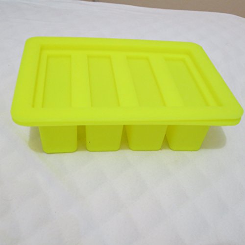 Large 4 Cavities Silicone butter mold,Pudding and Jello Shot Mold,Cheesecake, Bar, butter mold with lid Product Dimensions 7 x 5 x 2 butter mold stick(1, yellow)