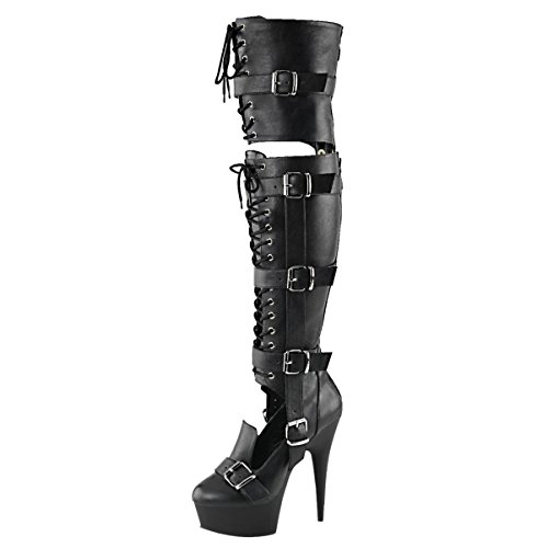 Womens Black Over the Knee Boots Detachable Shaft Lace Up Shoes 6 Inch Heels