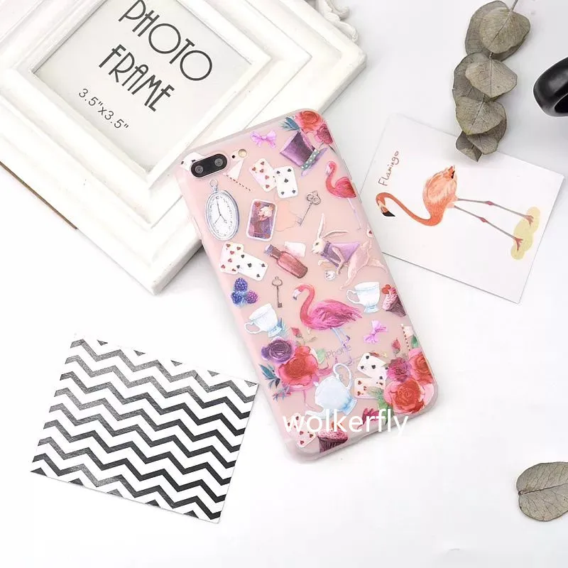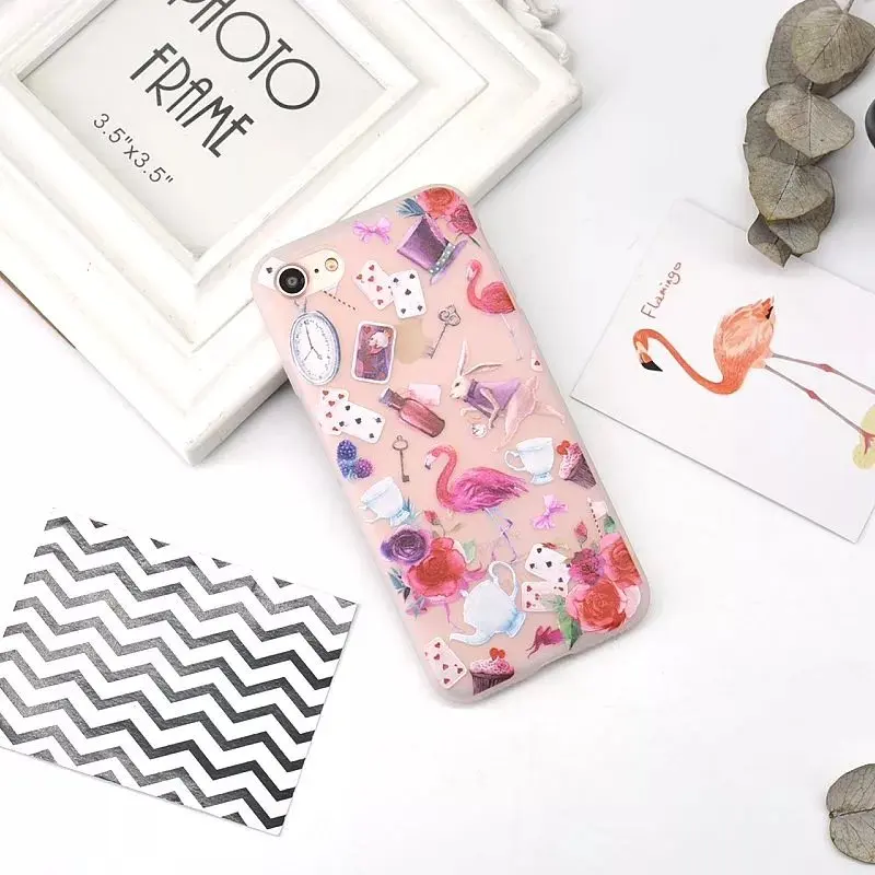 Features:3D Relief Colorful painting Soft TPU Cartoon Flamingo Phone Cases