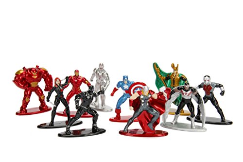 -. Binding : Toy -. Brand : Jada -. EAN : 0801310844373 -. Feature : Bring home an entire collection of dozens of figures that can all fit in your pocket! / The Marvel Nano Metalfigs Die-Cast Metal Mini-Figures line brings you all the best heroes and villains across the Marvel Universe reminiscent of classic metal miniature figures! / Each extremely detailed Nano Metalfigs figure stands about 1 2/3-inches tall and is made of 100% die-cast metal. / Ages 3 and up. The Marvel Nano Metalfigs Die-Cast Metal Mini-Figures 10-Pack contains 10 die-cast metal mini-figures: Iron Man Captain America (Classic) Hulk Buster Black Widow Black Panther Ultron Captain America Ant-Man Falcon Loki -. IsAdultProduct : 0 -. Label : Jada Toys -. Manufacturer : Jada Toys -. Model : 84437 -. MPN : 84437 -. NumberOfItems : 1 -. PackageQuantity : 1 -. PartNumber : 84437 -. ProductGroup : Toy -. ProductTypeName : TOYS_AND_GAMES -. Publisher : Jada Toys -. ReleaseDate : 2017-10-21 -. Studio : Jada Toys -. Title : Marvel Nano Metalfigs Die-Cast Mini-Figures 10-Pack -. UPC : 801310844373 -. Warranty : No Warranty