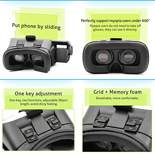 -. Binding : Wireless Phone Accessory -. Brand : Ovinm -. Feature : REVOLUTIONARY TECH: Instant, accessible 3D cinema. Turn your smartphone into a virtual reality viewer and experience the immersive, funny and exciting world of VR. / COMPATIBLE WITH ANDROID, IPHONE AND WINDOWS PHONES: 4.0-6.0 inch screen, more than 300 virtual reality apps on Apple App Store and Google Play Store to download to enjoy shocking 3D effect. Perfect for your face when you wear the 3D VR GLASSES. / T-SHAPED STRAPS: Adjustable, suit different people. Its design make it comfortable for you, no more pressure on your eyes when enjoy the movie or game. / SUITABLE VIEWING DISTANCE: A 1000 inches big screen at the distance of 3m make 3D picture effect is super wonderful. Adjustable pupil distance and sight distance (adjustable on pupil distance and object distance), satisfying different groups of people. Suit he who's myopia under 600 degrees. Get free from your glasses while enjoy the 3D movies or games with the virtual reality glasses. / OPTICAL SLIDING CONTROL, EASY TO THE SMART PHONE IN -Move the button on the top of the 3D VR GLASSES to adjust the position of the spherical resin lens, to get better feelings. A viewing angle of 95 to 100 degrees/ FOV is possible. The smart phone storage box can be easily pull out, and put your smart phone in. -. Label : Ovinm -. Manufacturer : Ovinm -. MPN : VR glasses160714 -. PackageQuantity : 1 -. PartNumber : VR glasses160714 -. ProductGroup : Wireless -. ProductTypeName : WIRELESS_ACCESSORY -. Publisher : Ovinm -. Studio : Ovinm -. Title : Virtual Reality Headset, Ovinm 3D VR Virtual Reality Glasses Cardboard BOX For 3D Movies and Games, Fits for Smartphones iPhone Samsung Galaxy IOS Android Cellphones
