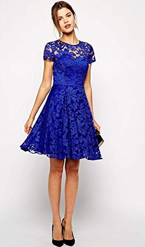 -. Feature : 鮮やかなブルーなドレスはCOOLかつ上品な印象を与えてくれます / 絶妙なレース使いが大人なセクシーさと華やかな印象を与えてくれます / 膝丈なので適度な露出でどんな場にも馴染みます / カラー:ブルー サイズ:S M L XL / 素材:ポリエステル