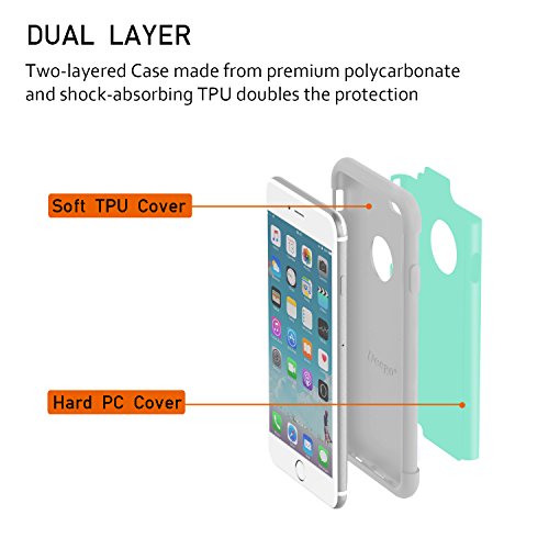 Reinforced Corner increases Shock Absorbing from drop protection.Two-Layer design with Outer rubberized Hard PC + Inner Soft Rubber layer cushions and shields provides your iPhone 6/6s extra protection from impacts, drops and scratches