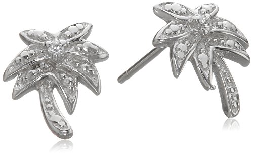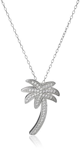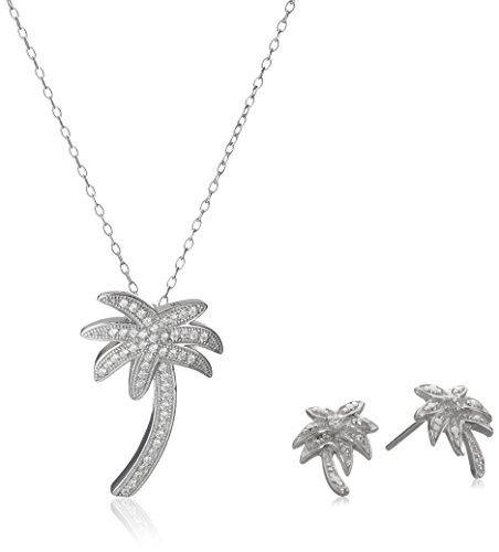 Sterling Silver Cubic Zirconia Palm Tree Post Earrings and Pendant Necklace Jewelry Set