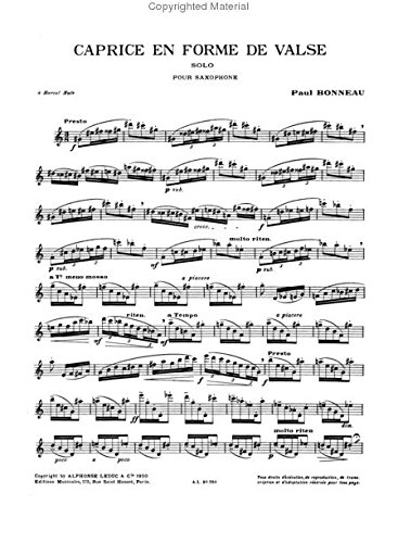 Paul Bonneau AL20750 Caprice En Forme De Valse for Solo Saxophone by Alphonse Leduc