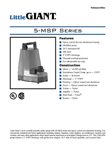 Little Giant 505202 5-MSP 230 Volt 1200 GPH Utility Pump