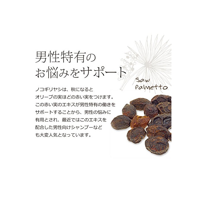 한밤중의 화장실이나,스타일링의 굵음이나 볼륨 등에「톱니 야자 엑기스」를 배합한 서플리먼트입니다.