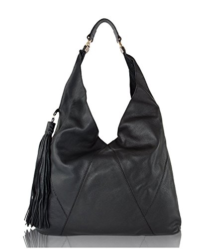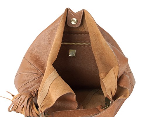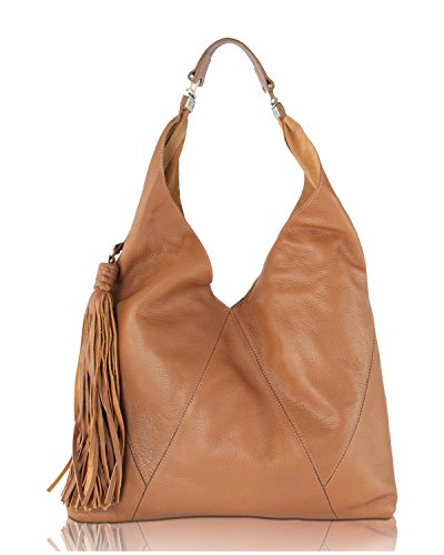 Crafted from rich pebbled 100% Genuine Leather for timeless appeal, this slouchy hobo handbag imbues your look with a boho edge, Top magnetic closure with hanging tassel accent, soft pebbled leather exterior, back zipper pocket, single top carrying handle with 12" shoulder drop, V-shape opening spacious interior with multi functional zip and slip pockets. Its durable construction promises long-lasting use!!Feature