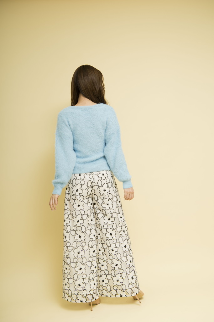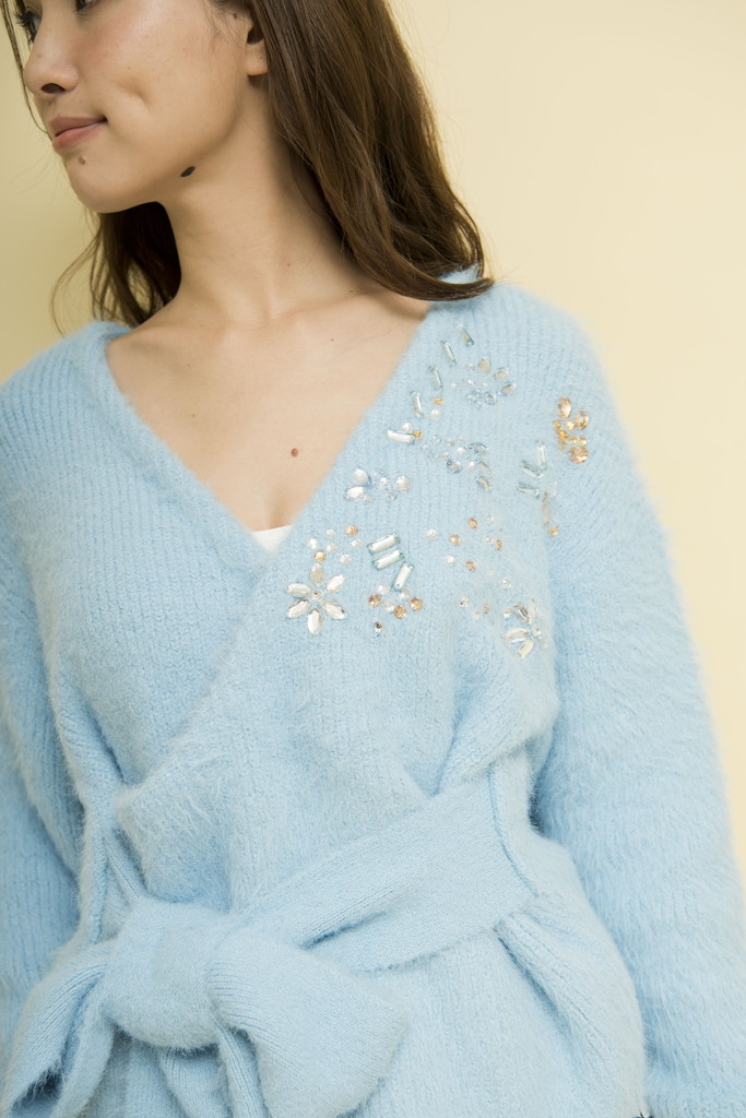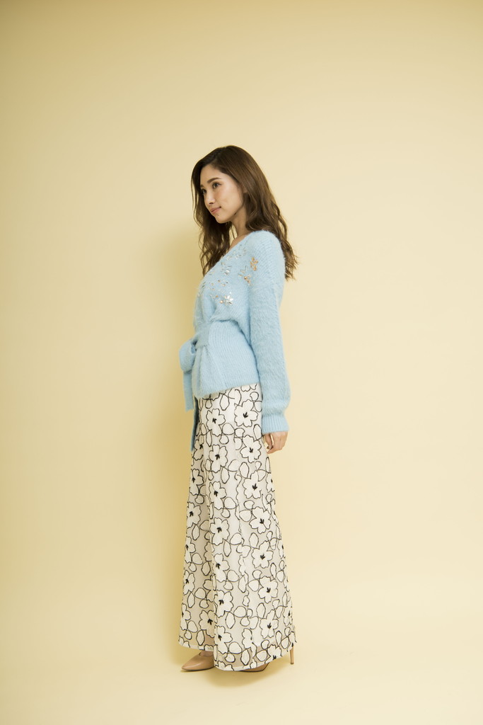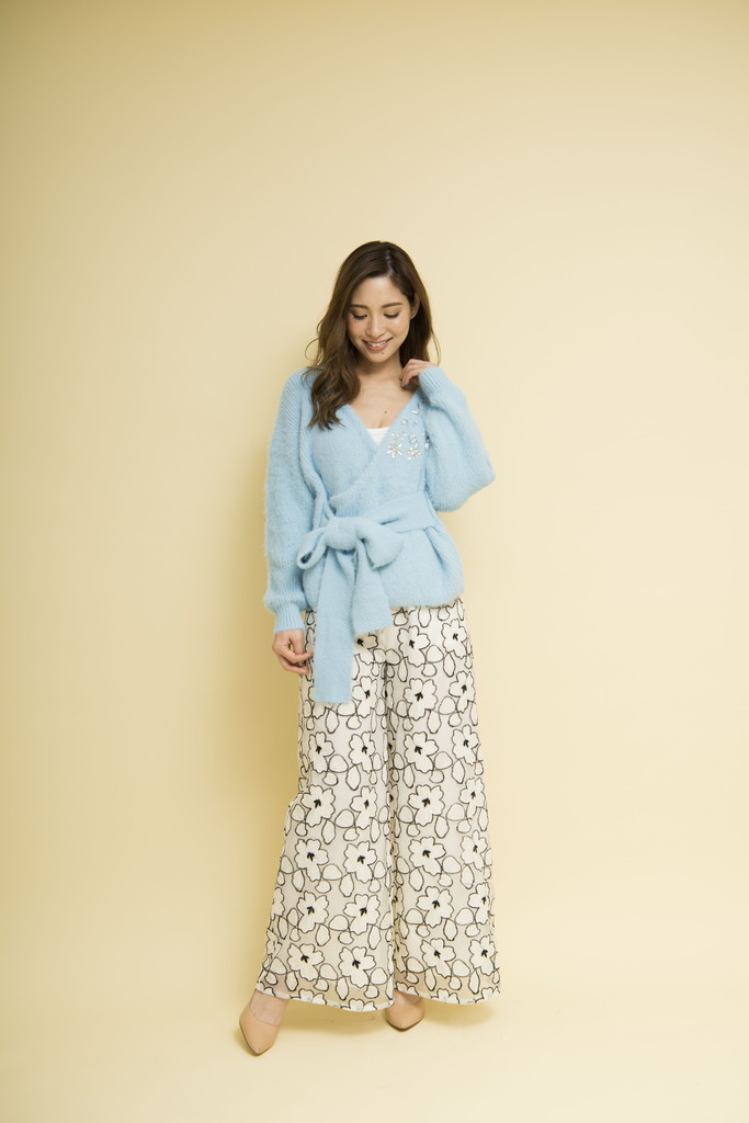 Concept : RADIANT WOMAN品のある女性らしさを大切にしながらも、いつもどこか華やかでありたいトレンドを敏感にキャッチし、 自分らしく新しい着こなしを探している自由な思考をもった華のあるエイジレスな女性そんな女性の日常を輝かせるChicで、Playfulなアイテムを提案まだまだ寒いこの季節ですが、もう冬ものは着たくない!そんな今の時期にぴったりなフェザーニット。暖かいのに春カラーが欲しいという願いを叶えました☆カラービジューが大人女子を演出してるのもGOOD!!