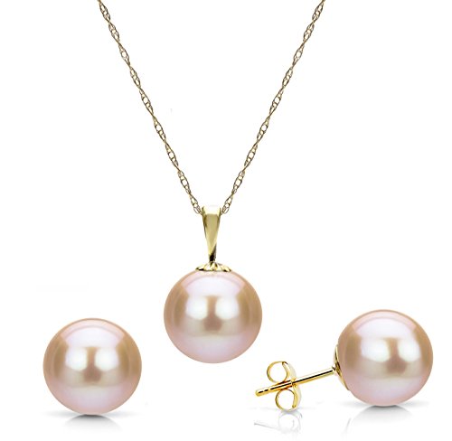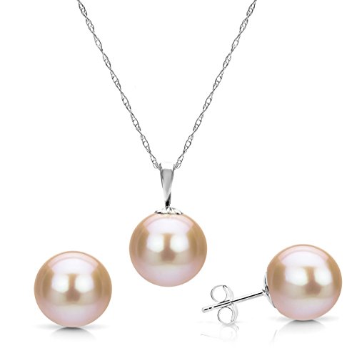 This is A Beautiful 14k White Gold 8-8.5mm Round Pink Freshwater Cultured High Luster Pearl Pendant with an 18" Long Rope Chain Necklace, and a Matching Stud Earrings Jewelry Set. The Chain is Finished with a Spring-ring Clasp. We Carry Different Color of Pearl, Different Pearl Size, and Different Metal Type. Please Contact Us Of You Do Not See What You Need.