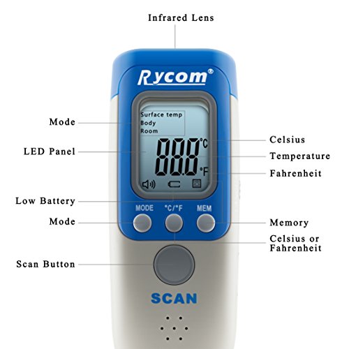 Rycom Thermometer 5-in-one Non-contact, Quick and Accurate Infrared Temperature with [Three modes] 100% Safe for Baby Kids Children Adults (CE and FDA...