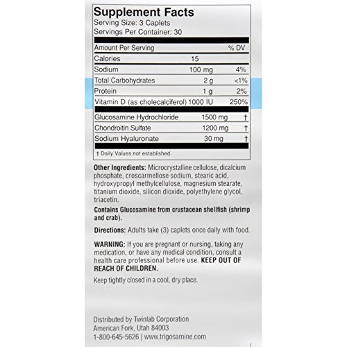 -. Binding : Health and Beauty -. Brand : Trigosamine -. EAN : 5056018957565 -. Feature : Support mobility, maintain flexibility and promote the comfort of your joints / New stronger formula with vitamin D for healthy bones / Also contains hyaluronate, providing you with a triple-acting formula to help support healthy joints / With added 1000 IU of vitamin D / Gluten Free, Wheat Free -. IsAdultProduct : 0 -. Label : Trigosamine -. Manufacturer : Trigosamine -. MPN : KE1562503 -. PackageQuantity : 1 -. PartNumber : KE1562503 -. ProductGroup : Health and Beauty -. ProductTypeName : HEALTH_PERSONAL_CARE -. Publisher : Trigosamine -. Studio : Trigosamine -. Title : Trigosamine Maximum Strength with vitamin D for healthy bones - 90 Caplets - Gluten Free - Wheat Free