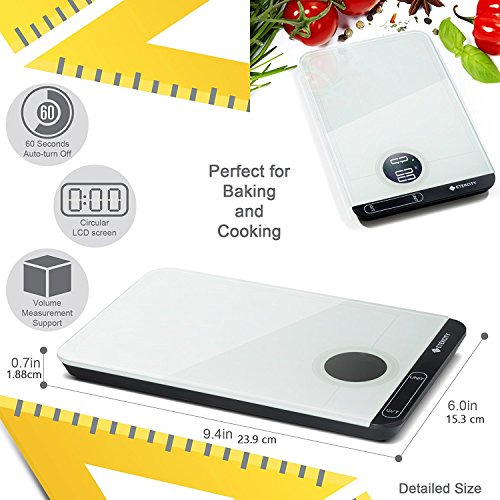 ETEKCITY Etekcity 5KG Smart Digitale Kuchenwaage, Elektronische Waage, Professionelle Waage, Briefwaage mit Precision Touch-Sensitive, Tara-Funktion, Ausgeglichenes Glas, leuchtende LCD-Dis