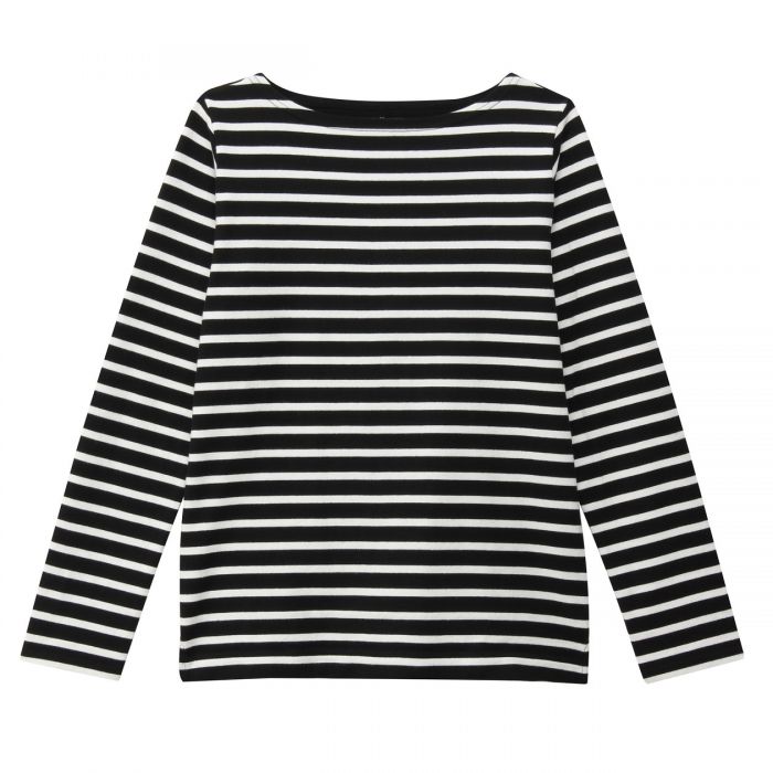 Muji 오거닉 코튼태 번째 보더 긴 소매T셔츠 부인S검정×백NEW
