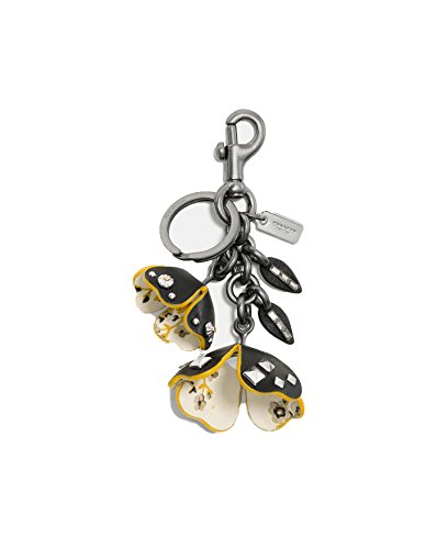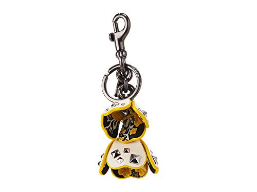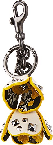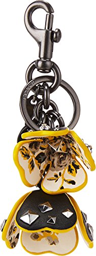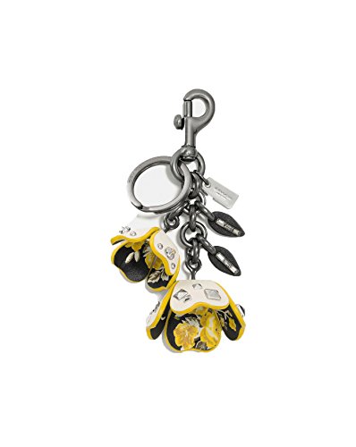 COACH Womens Floral Printed Leather Tea Rose Bag Charm