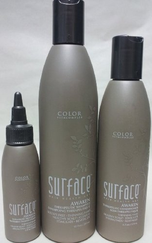 -. Feature : Surface AWAKEN trio Therapeutic Shampoo 10 fl oz Therapeutic Conditioner 6 oz Awaken Therapeutic Treatment 2 fl oz. by SURFACE / Experience Therapeutic Treatment of: Thinning Hair Dandruff Psoriasis Itchy Scalp Oily Scalp