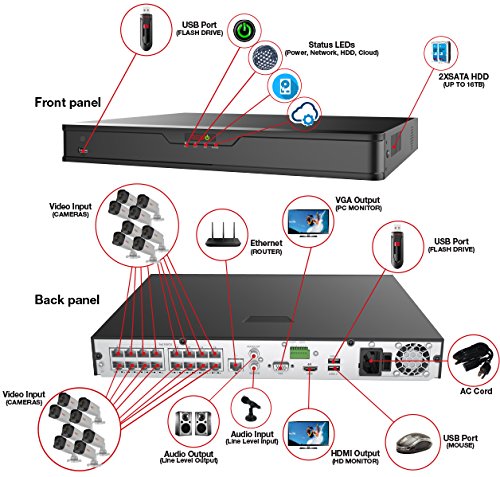 Revo America Ultra 16CH 4K H.265 NVR, 2 TB Surveillance Grade HDD, Remote Access, with 8x 1080p Indoor/Outdoor IR Bullet Cameras