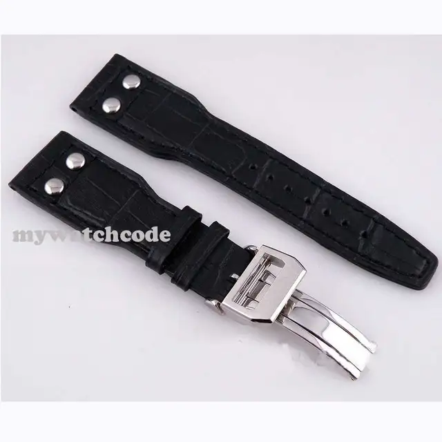 | [해외]24 미리메터 리벳 디플로 스타일의 걸쇠 정품 블랙 가죽 시계 스트랩 ST18 |