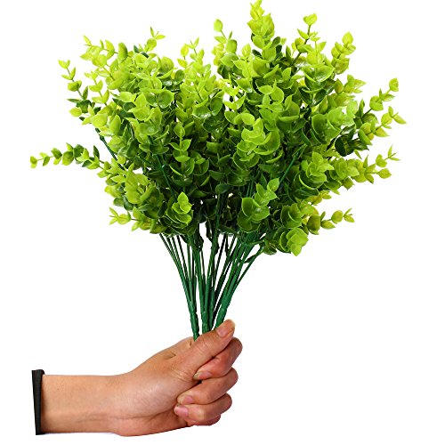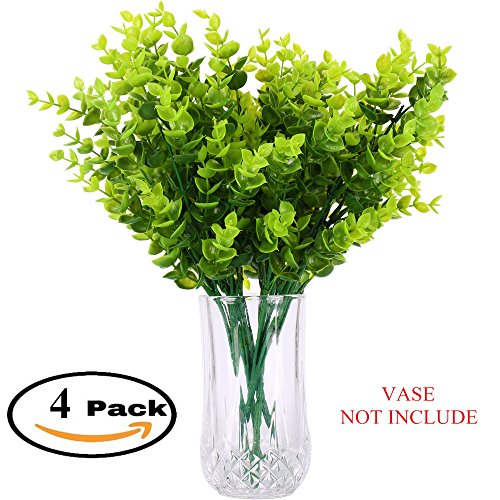 Artificial Plants Shrubs : Z-Liant Pack of 4 Faux Plastic 14" Eucalyptus Leaves,Fake Simulation Greenery Garden,office,indoor decor plants,Good for Party Festival Gift