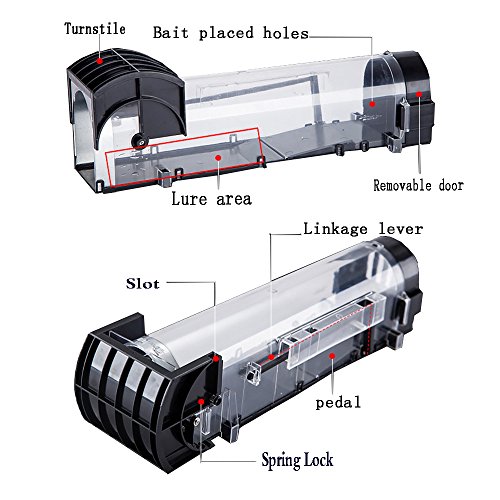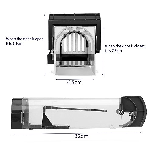 HIGH QUALITY AND REUSABLE:Good ABS transparent plastic means trap is easily monitored. Metal door is more firm that the mouse is hard to bite through it,it also can be reused.