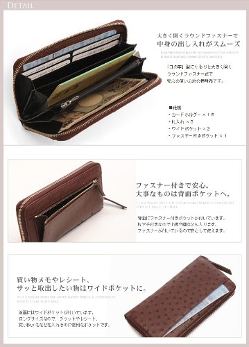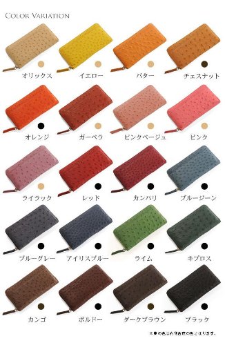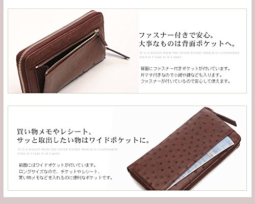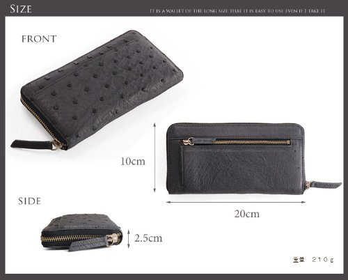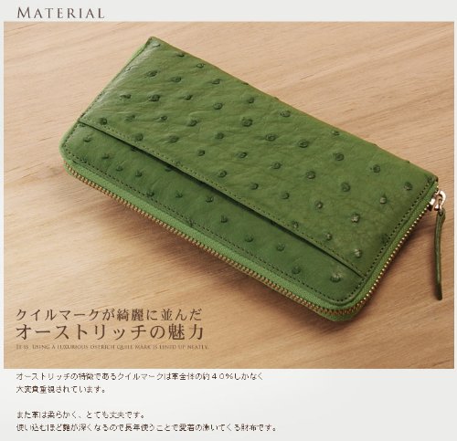 -. Title : 長財布 オーストリッチ レザー ラウンドファスナー レディース 本革