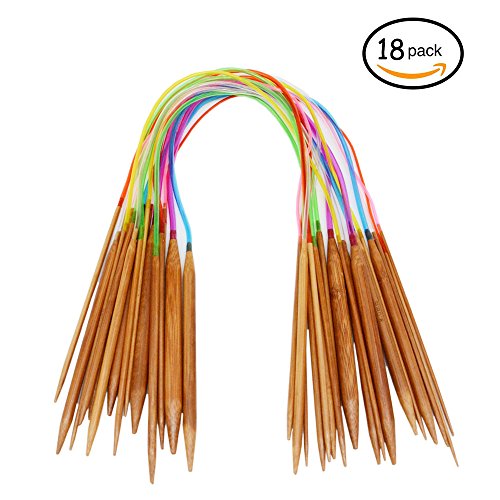 Youwen Circular Colorful Tube Bamboo Knitting Needles Set 18 Sizes 2 mm - 10 mm comparable to US sizes 24 inch Length