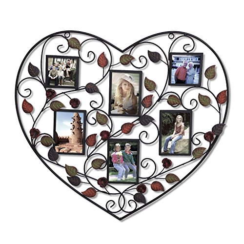 -. Title : DecentHome 6-Opening Decorative Bronze Iron Metal Wall Hanging Collage Photo Frame Heart Shape