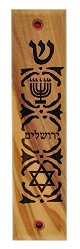 - Comes with Menorah, Jerusalem in Hebrew ( Yerushalime ) and Star of David engraved with Laser and engraved with Laser. Very meaningful and beautiful Mezuzah case from Jerusalem.