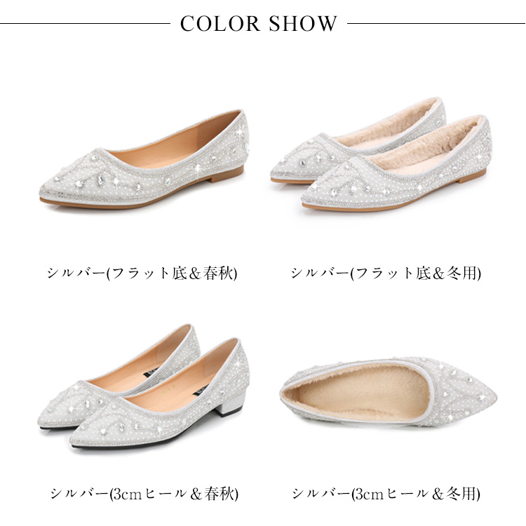 | 色 | シルバー(フラット底&春秋) シルバー(フラット底&冬用) シルバー(3cmヒール&春秋) シルバー(3cmヒール&冬用) |