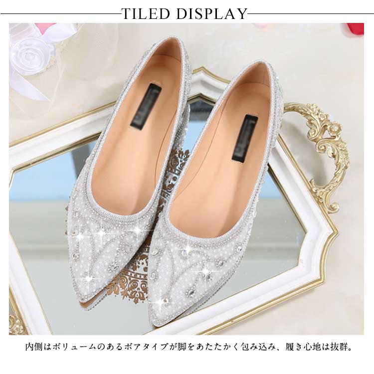 | 足元を華やかに演出してくれるラインストーンパンプス!内側はボリュームのあるボアタイプが脚をあたたかく包み込み、履き心地は抜群。滑りにくいソールで沢山歩く日も大活躍。シンプルなドレスやキュートなドレスなど相性抜群なので、どんなシーンでも大活躍♪ フラットソールデザインがマタニティにもお薦め!大切な日を、さらに美しく演出する、幅広いシーンで活躍する美脚パンプスです。 | |