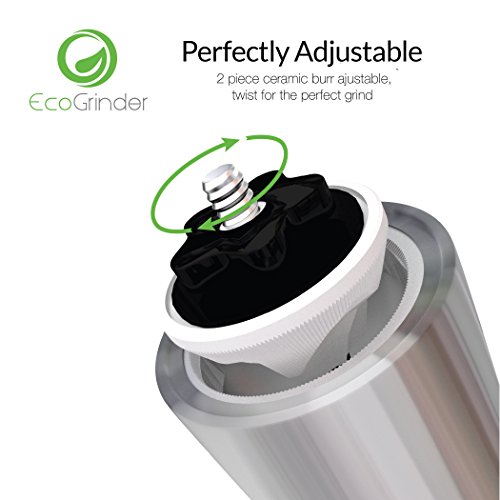 Premium Ceramic Burr Mill for precision grind w/adjustable screw for the perfect grind! The Burr's edge has been precisely shaped to cut the bean while maintaining flavor at every grind size. Beautiful indestructible stainless steel design built to withstand the demands of everyday use and travel. Constructed for maximum durability and to be easily taken apart for ease of packing and cleaning. This grinders inner spring keeps the grind consistent even when grinding for coarse brewing.Lifetime Guarantee