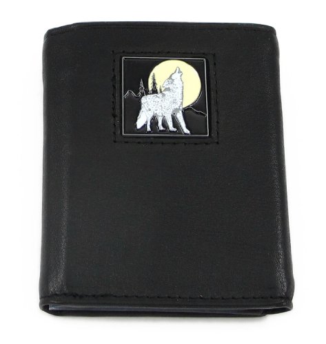 Our tri-fold wallet is made of high quality fine grain leather with a howling wolf emblem sculpted in pewter in fine detail on the front panel. Includes slots for credit and business cards and clear plastic photo sleeves.Feature