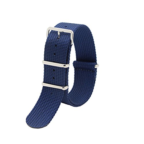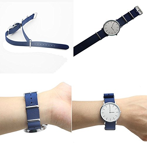 - Feature : Easily Interchangeable Replacement Watch Strap / Width:22mm , Length:about 280mm / fit for 22mm lug width watch band,Replacement Pebble time,LG G-watch,Samsung R380 R381 R382,asus Zenwatch100 W110 / 100% stainless Steel hardware / 2PC nato watch band(1*Black nylon strap black ring,1*Navy Black nylon strap sliver ring)