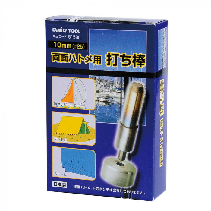 fk094igrjs海洋レジャー、テント、シートなどに両面ハトメ用の打ち棒です サイズ 個装サイズ:10×15×2cm 重量 個装重量:700g 素材・材質 打ち棒:S45C 台座:SS400 仕様 対応サイズ:10mm(♯25) 全身焼き入れ 製造国 日本 両面ハトメ用の打ち棒 ※両面ハトメ・下穴ポンチは含まれておりません別途ご購入ください 海洋レジャー、テント、シートなどに両面ハトメ用の打ち棒です