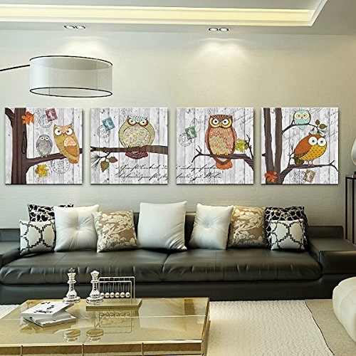 -. Title : RAIN QUEEN Ready to Hang Cute Owl Canvas P.R.Int Paintings 4pcs