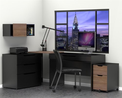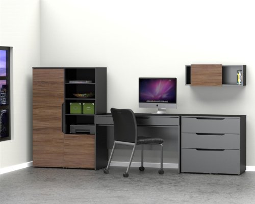 - Title : Nexera 603536 Next Wall Storage Unit with Sliding Door, Black and Walnut