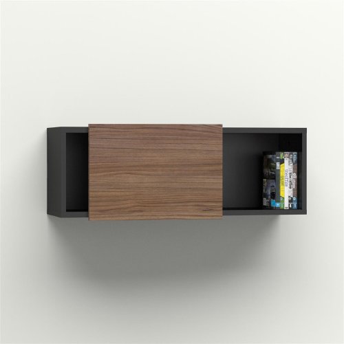 - Feature : Wall shelving unit divided in 2 sections with sliding door / Easy installation / Part of Next Collection from Nexera / Black melamine and Walnut finish
