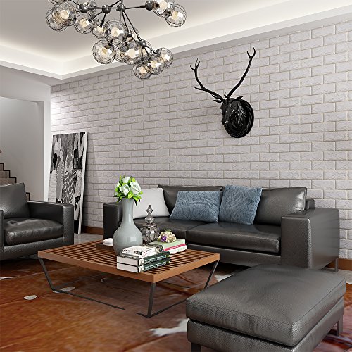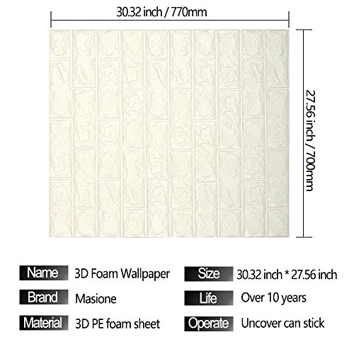Masione 3D Self-adhesive Wall Panels Faux Foam Bricks Wallpaper for TV Walls / Sofa Background Wall Decor (White-10 pieces 58.13 sq.ft)