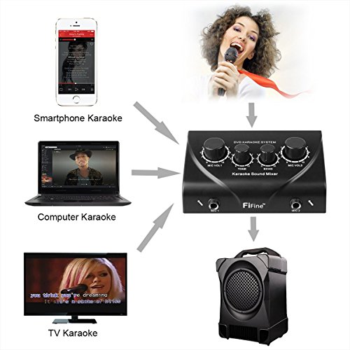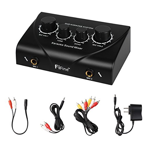 Karaoke Mixer Fifine Digital Audio Sound Echo Mixer with Cable for TV PC smart phone and Amplifier (Black)
