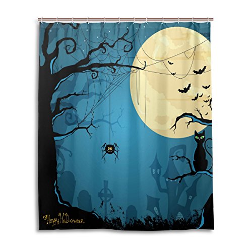 -. Title : OP.R.INT Halloween Moon Owl Spider Shower Curtain for Bathroom Waterproof Fabric Bathroom Deco 66x72 inch
