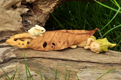Top Collection Enchanted Story Garden Sleeping Fairy Baby Outdoor Décor with Baby Rabbit, 7.25-Inch