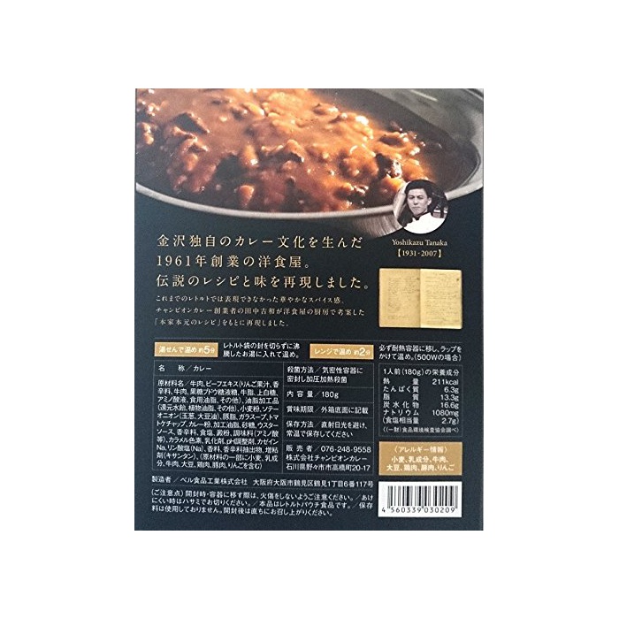 지금까지의 레토르트에서는 표현할 수 없었던 화려한 스파이스감.챔피언 카레 창업자의「타나카 요시와」가 양식 집의 주방에서 고찰했다「본가 근원의 레시피(요리처리법)」를 토대로(원인으로) 재현했습니다.