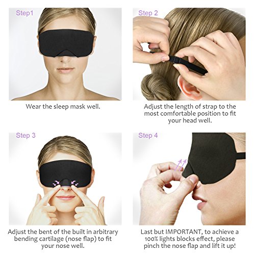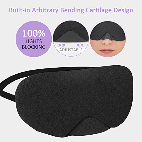100% Blindfold & Blocks All Light - Adopted a patented design "The Built-in Arbitrary Bending Cartilage" for this sleeping eye mask to fit the diverse bridge of the nose and achieve a totally block out all disturbing light. Helping you fall a sleep easier and engage in deep REM sleep quicker in any body position!