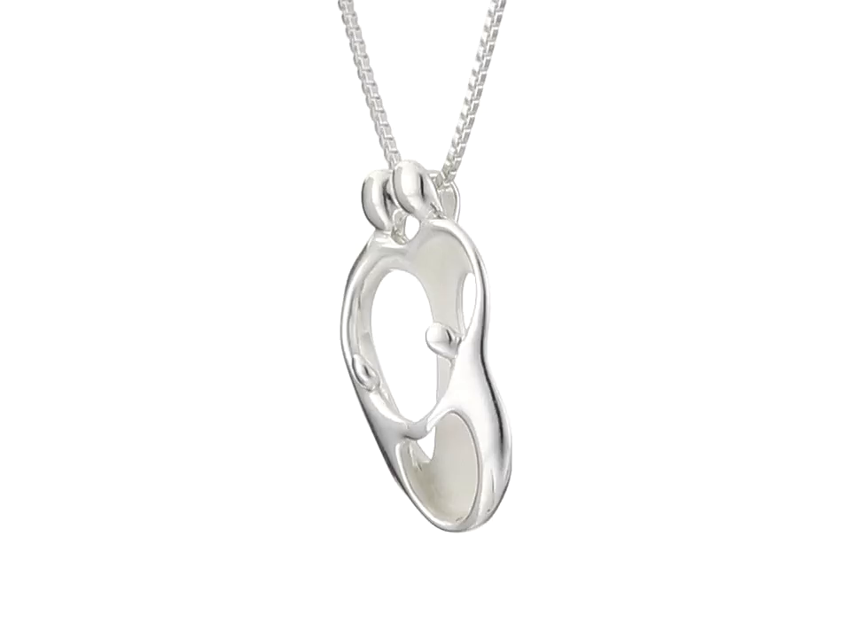 Sterling Silver Loving Family Parents with Two Children Pendant Necklace