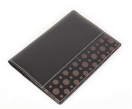 -. Feature : Handmade designer passport wallet - black good quality leather with patterned in oriental character leather patch. / Slim design for easy carry, left inside with 1 slot, right inside with 4 slots to hold passport and cards. / On outer passport wallet, patterned different leather patch add glamour to this passport wallet. / Comes in a luxurious gift box - ideal for gift. / Delivery to UK and International destinations