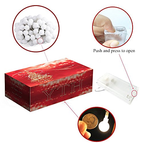 ADORABLE GLOBE SHAPE DESIGN: These Battery powered Globe LED String Lights include 50 mini LED bulbs in delicate frosted white ball shape. Totally 16feet / 5meters long. 50 globes are spaced every 4 inches. The diameter of each globe is 0.75 in.